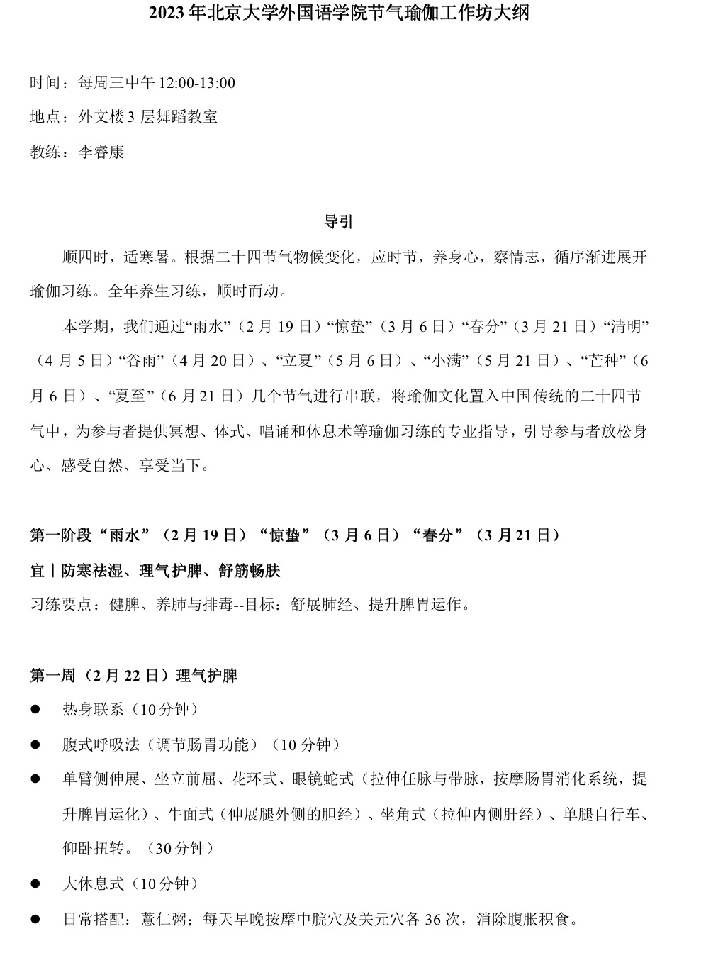 瑜伽社团的各位老师:本学期瑜伽社团计划打造节气瑜伽,把瑜伽和二十四节气结合在一起,增加一些养生的元素,以下是课程的主要内容,我们等你来!