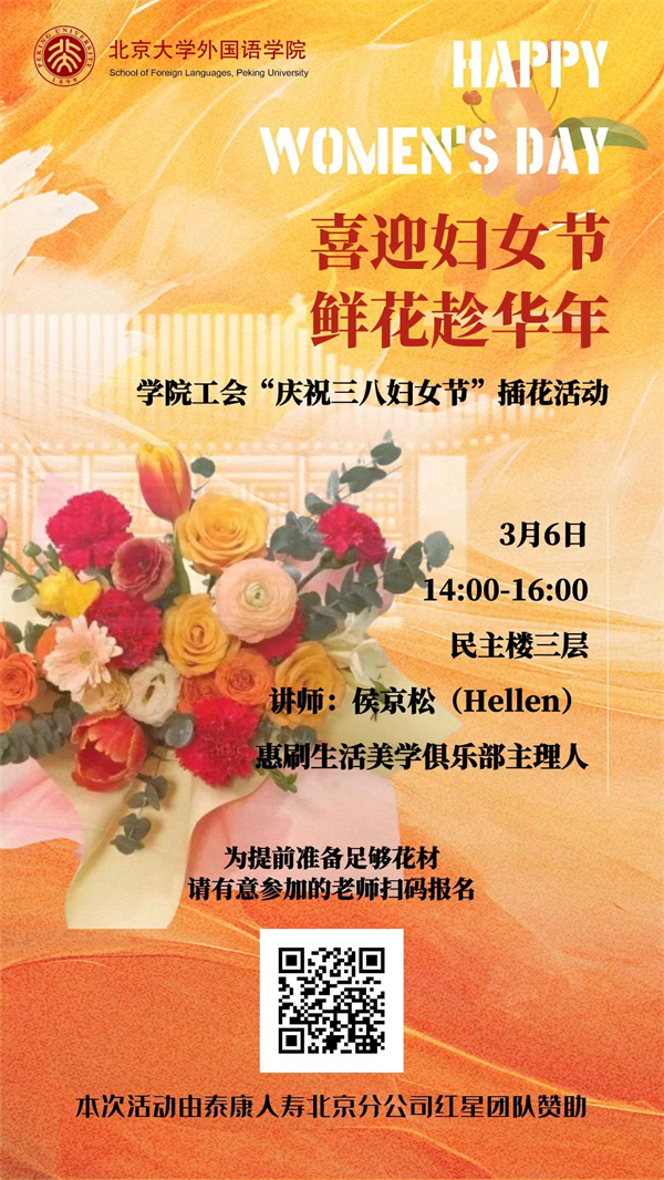 为庆祝第114个“三八”国际劳动妇女节,2024年3月6日下午,星空体育入口_星空(中国)体育网工会在民主楼三层活动空间举办了插花教学与实践活动,学院党委副书记、工会主席张冬梅老师及学院三十余名教职工参加,北京大学工会副主席田越受邀出席。本次活动由泰康人寿北京分公司红星团队赞助支持。
