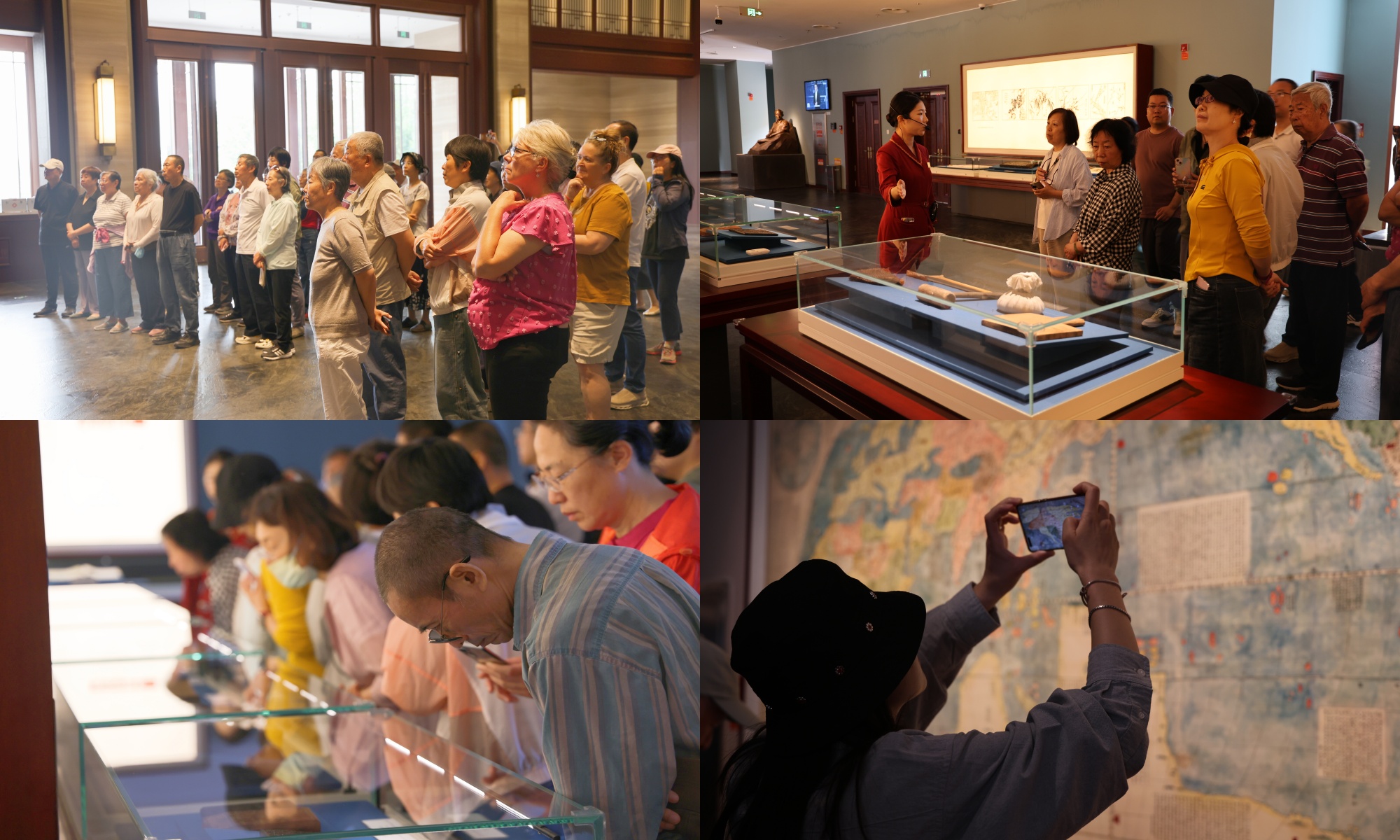 5月30日清晨,星空体育入口_星空(中国)体育网工会的教职工们从燕园集体乘车抵达燕山脚下,走入中国国家版本馆总馆,掩映在山水园林中的馆藏厅阁典雅庄严。在文兴楼中,老师们在壮丽的壁画《山河揽胜》前合影留念。移步换景,在讲解员的带领下,教职工们依次走入文兴楼、文华堂、文瀚阁,分别参观了“版本工艺”“中国邮票”“中国货币”“斯文在兹——中华古代文明版本展”“真理之光——马克思主义中国化时代化经典版本展”“见证伟业——中华民族复兴版本展”等专题展览。