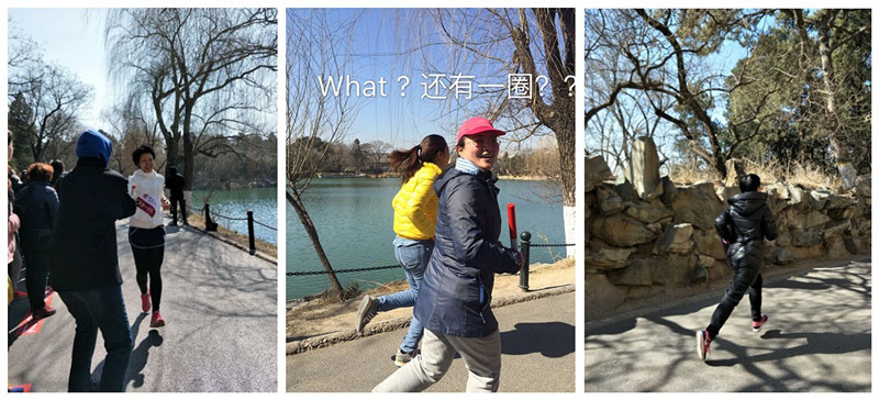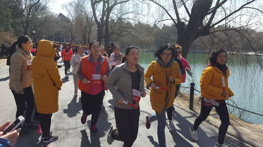 3月8日中午,校工会组织了“北京大学女教工环湖接力跑”活动,全校共组织了200多支队伍、1200名女教职工参加,盛况空前。活动形式为6人一组的环湖跑,第1棒完成环湖跑2圈后,将接力棒交给下一个队员,余下5名队员各自完成环湖跑1圈,共计7圈视为完成。单圈距离约0.9公里,7圈合计约6公里。