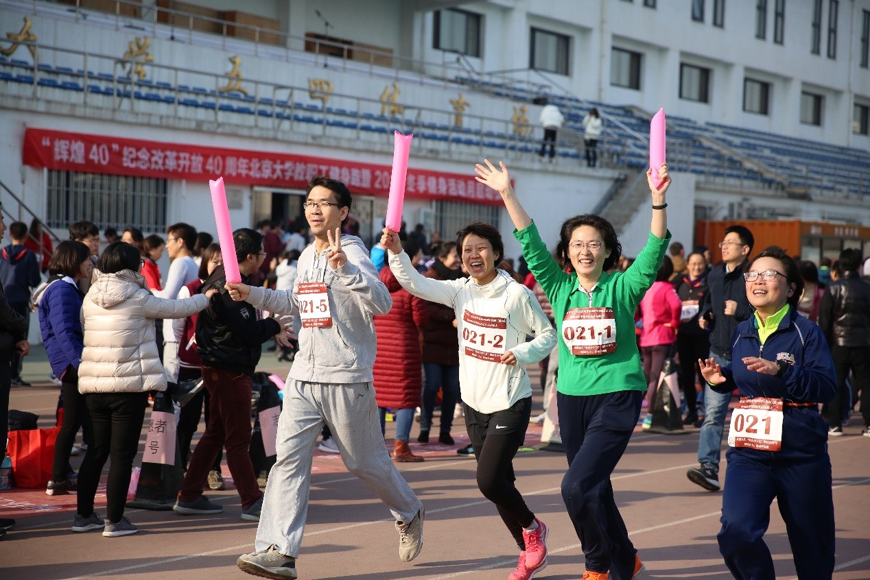 为纪念改革开放四十周年,星空体育入口_星空(中国)体育网教师纳海、林琳、于施洋、王爱京代表我院参加了北京大学工会组织的“’辉煌40’ 2018北京大学教职工健身跑暨冬季健身活动月启动仪式”的活动。她们于2018年11月30日中午在五四操场上合力长跑40圈。在此次活动中,我院教师充分发挥了奋勇拼搏,勇往直前的精神,轻松完成了16000米的长距离。