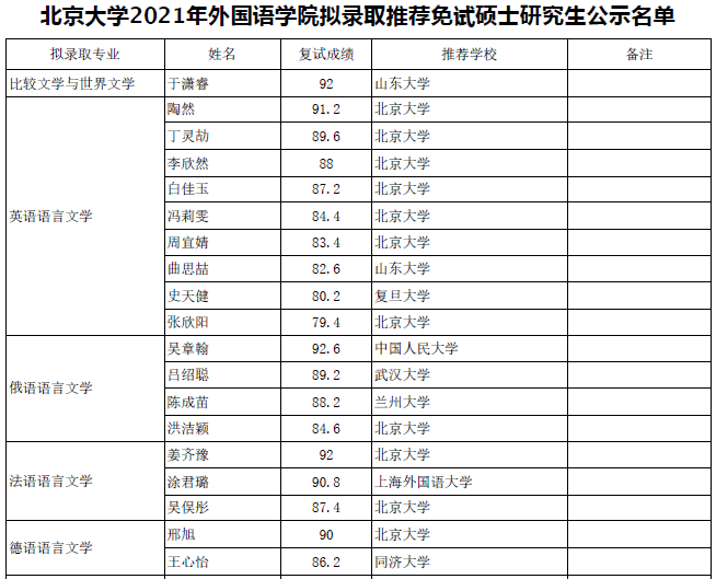 教学管理 北京大学2021年星空体育入口_星空(中国)体育网拟录取推荐免试硕士研究生公示名单 2020-10-15 名单公示期为自发布之日起的十个工作日,如有异议,请在公示期内向学院教务办公室反映。 邮箱:gwyyjsjw@pku.edu.cn