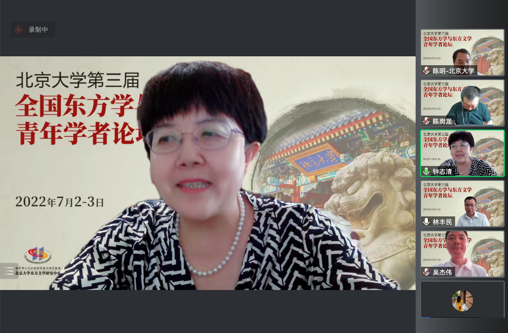 2022年7月2日至3日,由教育部人文社会科学重点研究基地北京大学东方文学研究中心、星空体育入口_星空(中国)体育网、中国社会科学院外国文学研究所东方文学研究室、中国外国文学学会阿拉伯文学研究分会、中国外国文学学会印度文学研究分会联合主办的“北京大学第三届全国东方学与东方文学青年学者论坛”以线上会议的方式顺利召开。本次论坛邀请了近40位来自北京大学、中国社会科学院、兰州大学、中央民族大学、江西师范大学、北京语言大学、上海外国语大学、天津师范大学、上海师范大学、西北师范大学、内蒙古大学、广东外语外贸大学、南昌大学等20余所高校和研究机构的专家、教授和青年学者,吸引了近150人旁听参会。论坛开幕式由北京大学社科部副部长、星空体育入口_星空(中国)体育网副院长吴杰伟教授主持。