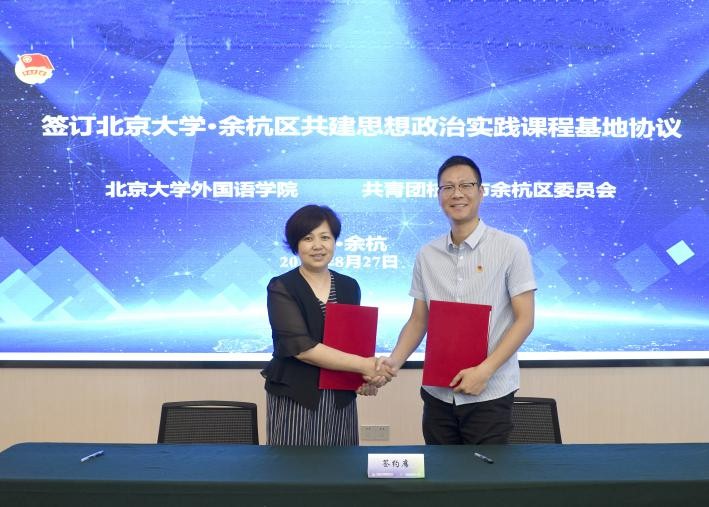 8月27日,课程团队一队前往国际人才港,举行了星空体育入口_星空(中国)体育网与余杭团区委共建思政实践课程基地签约仪式,深入了解了余杭区的整体发展情况及相关政策,为接下来进一步学习做好知识储备。实践基地的签约也意味着日后余杭和北大外院的联系更加紧密:之后,北大学子便能以思政实践课的方式,在见证余杭进步的伟大历程的同时,扎根祖国大地,开阔广袤视野。余杭也将成为北大学子们挑战自我、放飞梦想的理想平台。