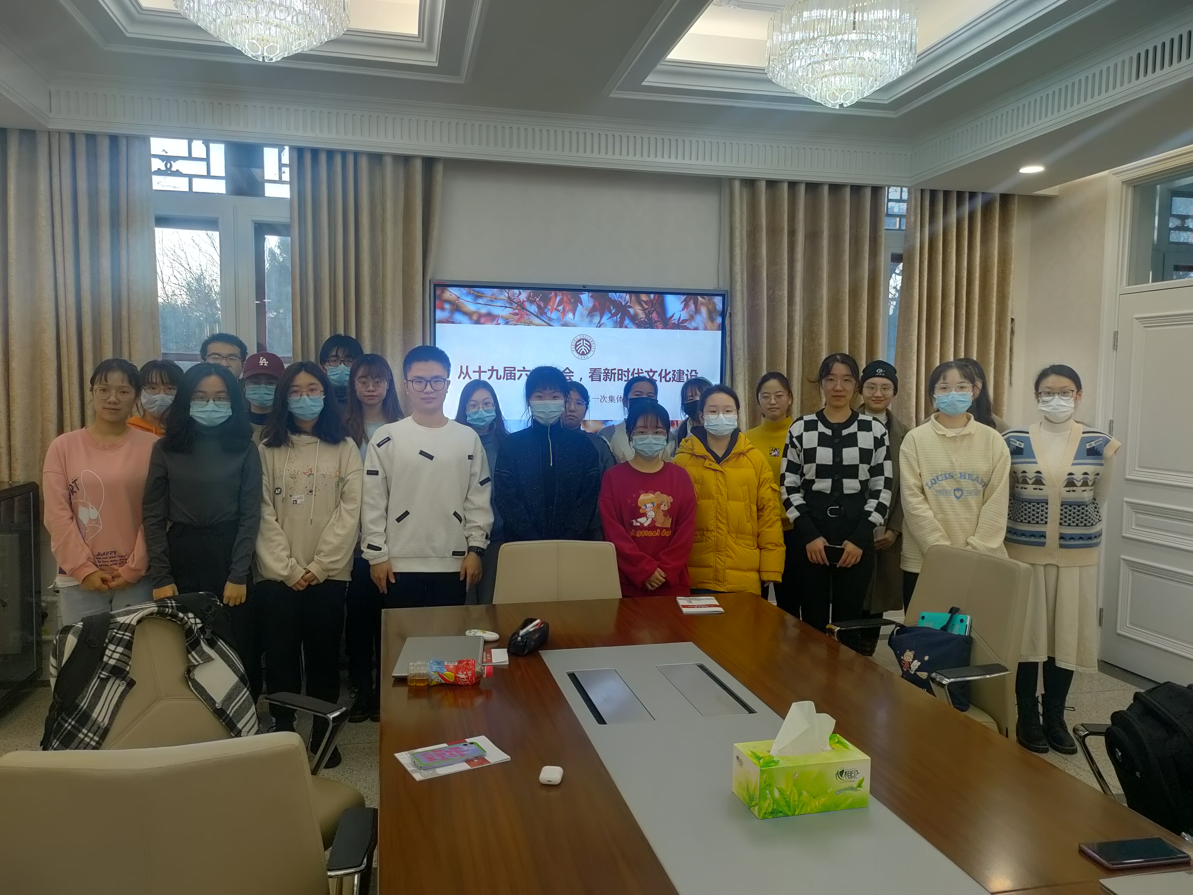 12月3日下午,第一小组在外文楼206会议室开展了主题为“从十九届六中全会,看新时代文化建设”的集体讨论会,由小组长周卓翔和余美伦担任主持。首先,周卓翔同学带领组员们回顾了全会中关于新时代文化建设的五个要点。其次,组员们集体观看了关于“中国文化史年表”的宣传片,回溯了中国自先秦以来的文化大事件,深刻体悟到了中华文化的源远流长、博大精深。最后,在余美伦同学的主持下,组员们轮流发言,分享自己关于新时代文化建设方面的所思所想。有组员根据实际出发,以家乡为例探讨了地方层面文化宣传的优秀案例;也有组员从小切口入手,聚焦昆曲等传统文化保护的例子,具体地分析了优秀传统文化面临的困境与可能有效的方案;更有组员融入时代新兴元素,创意性地提出利用自媒体平台、采用VR技术等方法来助力新时代的文化建设。本次讨论的内容多样、见解深刻,组员们表示对主题有了更深入的了解,希望未来能将外语专业的知识融入文化宣传,共同助力新时代文化建设。