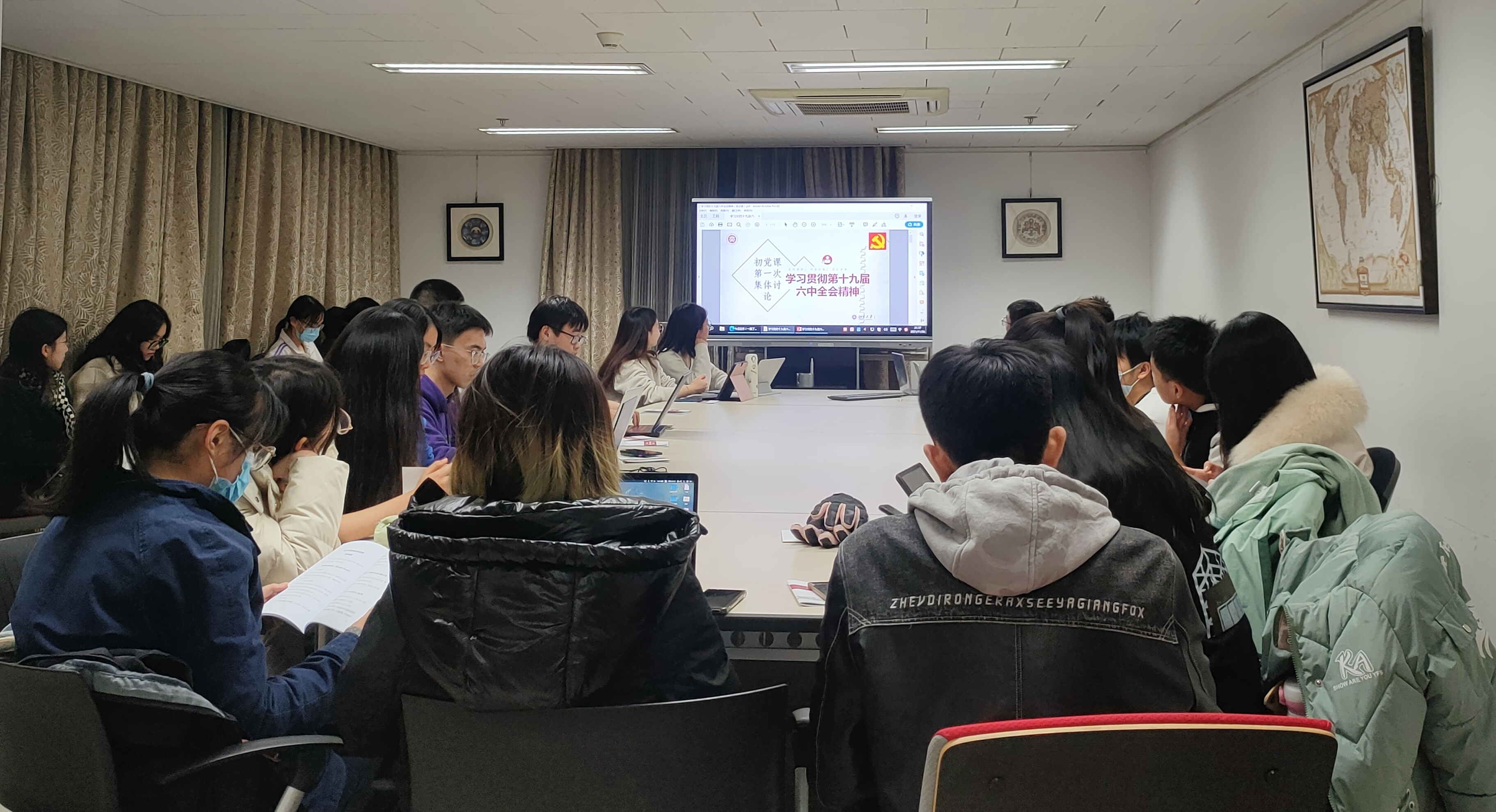 2021年11月26日至12月5日,星空体育入口_星空(中国)体育网第34期党的知识培训班第一次集体讨论会活动顺利开展。在培训班负责人党委副书记王恒老师的指导下、领队辅导员邹艾安的带领下,全体成员以小组为单位围绕《中共中央关于党的百年奋斗重大成就和历史经验的决议》、《关于召开党的第二十次全国代表大会的决议》以及《党的十九届六中全会公报》三份重要文件,深入学习贯彻党的十九届六中全会精神。7个小组共计175名成员在小组长的组织下,采取线下共同学习和集体讨论的方式,将理论性知识学习和具体校园实践相结合,在建党百年的重大历史节点上,明确了作为新时代青年应勇担民族复兴大任,争做新时代建设者和接班人的具体使命与要求。