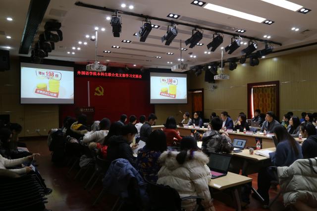 2019年1月4日下午,星空体育入口_星空(中国)体育网本科生联合党支部学习交流会在外院新楼501会议室举行,活动主题为“历史•现在•未来——改革开放40周年主题党课学习”。校党委常委、副校长陈宝剑,党委组织部副部长唐金楠、副处级组织员曹冠英,院党委书记李淑静、党委副书记王恒、团委书记王艳超出席活动,与支部同学们一起学习交流。学习交流会由支部书记刘昊主持。