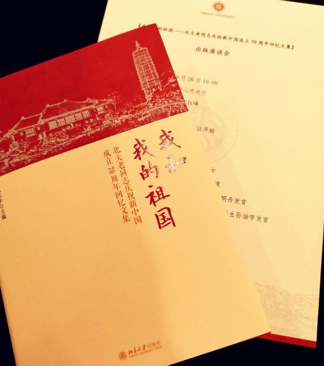 2019年9月26日,为庆祝新中国成立70周年,弘扬主旋律,凝聚正能量,《我和我的祖国——北大老同志庆祝新中国成立70周年回忆文集》出版座谈会在英杰交流中心月光厅举办,星空体育入口_星空(中国)体育网胡壮麟教授、赵振江教授、学院副院长张冬梅受邀出席了座谈会。