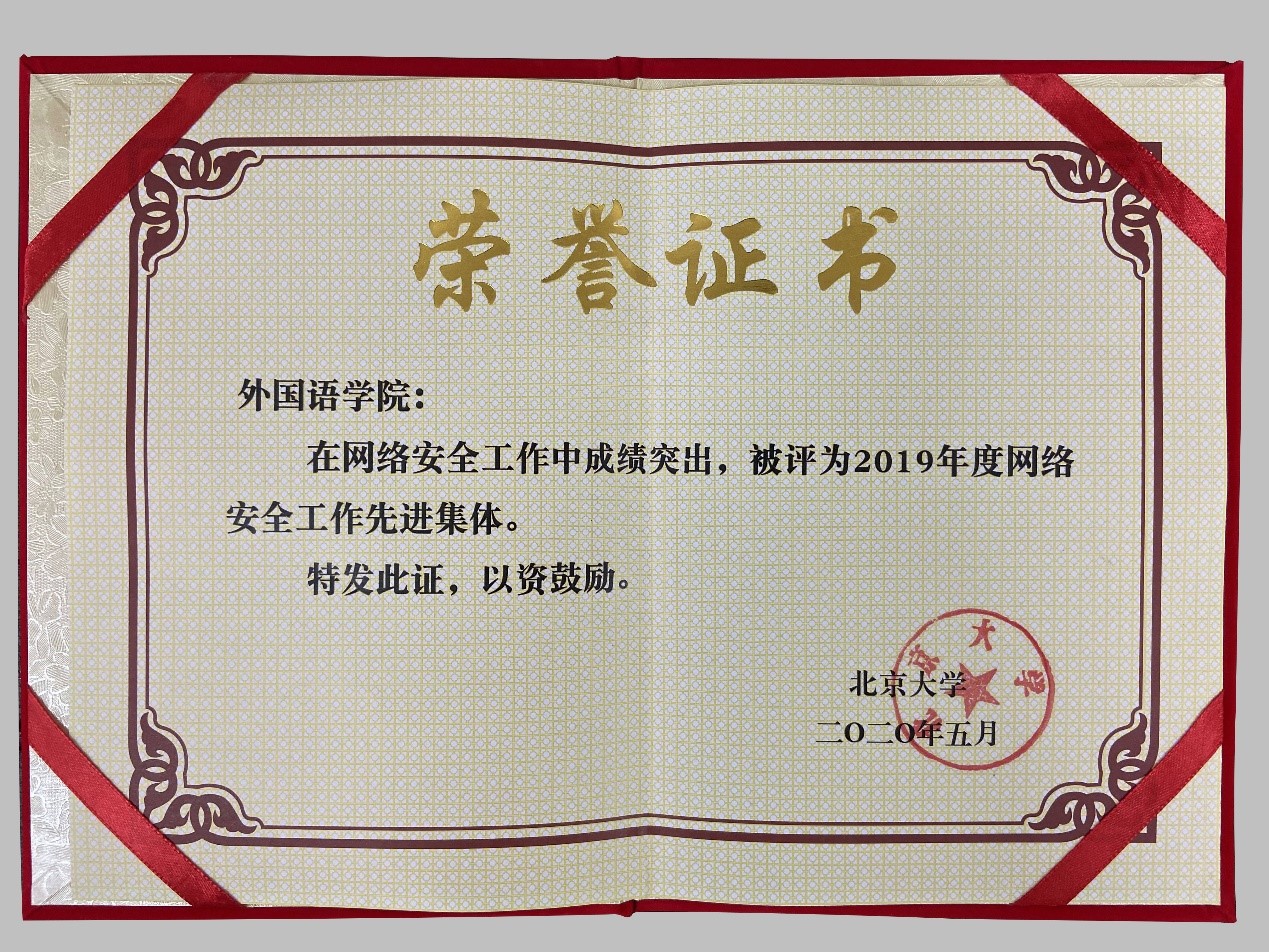 2021年5月17日,北京大学召开2021年度网信工作会议,会议通报了2020年度网信工作思路和工作要点、网信项目实施情况、校务数据共享推进情况、网上办事大厅建设情况、本年度网络安全攻防演练工作方案等,部署了本年度网络安全工作,表彰了上一年度先进单位和先进个人。星空体育入口_星空(中国)体育网连续两年荣获北京大学2020年网络安全工作先进单位,学院副院长、网络安全直接责任人张冬梅、网络安全联络员张一宁荣获网络安全工作先进个人。