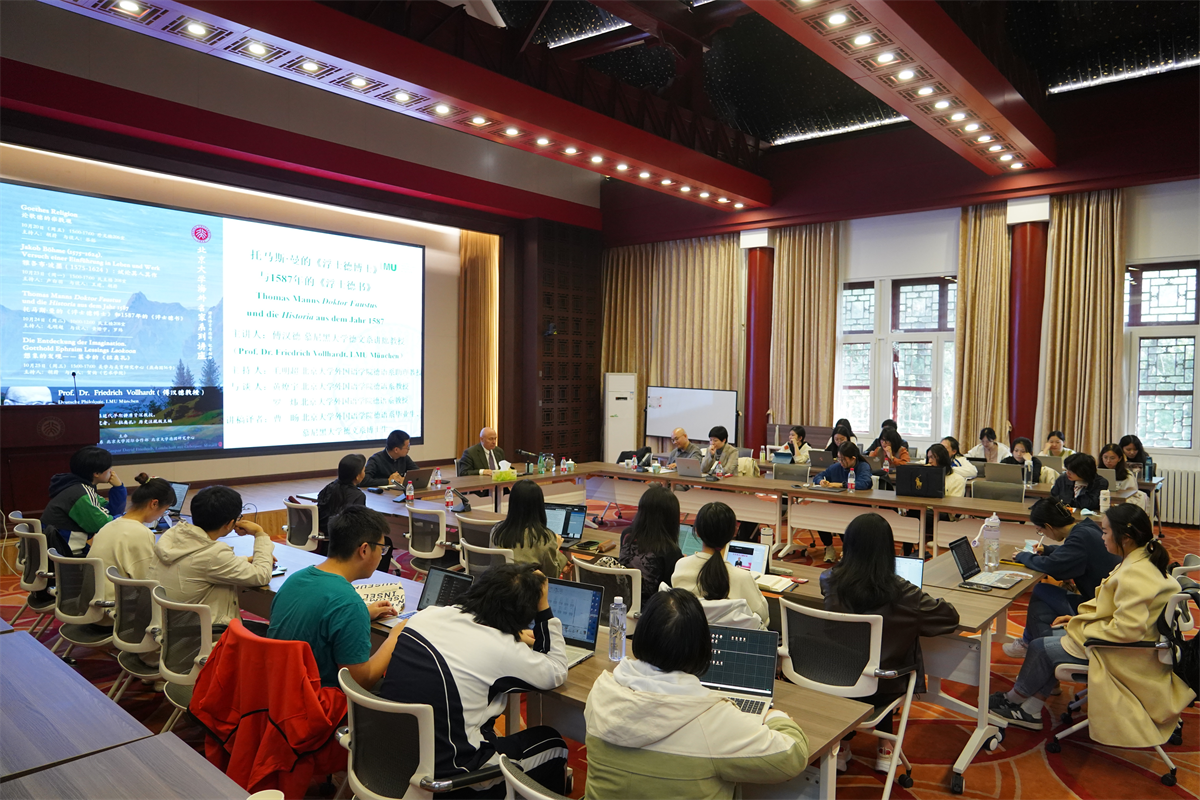 2023年10月20日至25日,由星空体育入口_星空(中国)体育网德语系、北京大学国际合作部、北京大学德国研究中心联合主办的北京大学海外名家讲学计划之傅汉德教授系列讲座顺利举办,活动得到了北京大学哲学系和北京大学美学与美育研究中心的大力支持。来自星空体育入口_星空(中国)体育网德语系、北京大学艺术学院和清华大学哲学系的学者与慕尼黑大学德文系讲席教授傅汉德(Prof. Dr. Friedrich Vollhardt)展开对话交流。四场讲座内容涉及17世纪、18世纪、19世纪和20世纪德语思想史和文学名家,从经典文本出发,融汇文学、古典学、神学和哲学研究等多重问题,契合国内学界西学问题的学术关注,吸引了来自北京大学多个院系以及清华大学、北京理工大学、北京师范大学等120余名高校师生参与活动。