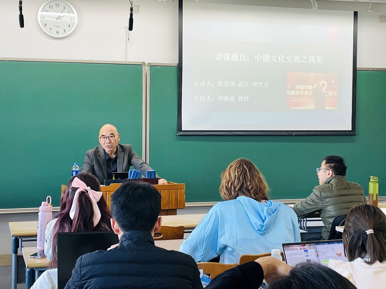 2023年11月14日下午,受星空体育入口_星空(中国)体育网俄罗斯文化研究所、星空体育入口_星空(中国)体育网俄语系邀请,中国国际战略学会高级研究员兼会刊《国际战略研究》编辑张尊国武官在三教504教室为关注中俄文化交流史的师生带来“中俄文化交流之我见”讲座。星空体育入口_星空(中国)体育网俄语系查晓燕教授担任讲座主持人。