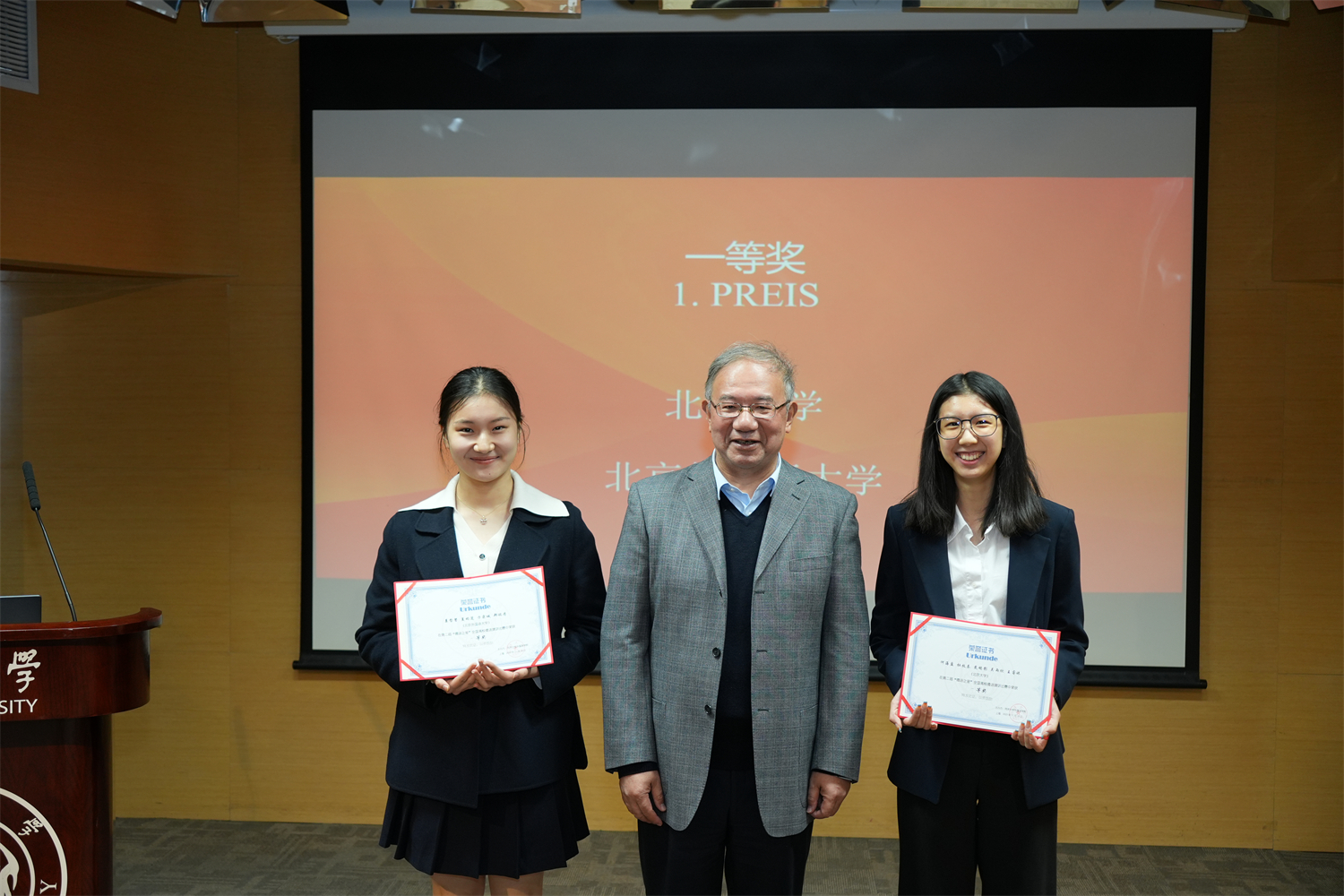 11月18日,由同济大学星空体育入口_星空(中国)体育网主办的第二届“德语之星”全国高校德语演讲比赛在上海落下帷幕。本次演讲比赛以“城市语言生活”为主题,全国共有16支代表队进入决赛。北京大学选派2022级本科生杜牧秦、戴鹂影、吴雨欣、王睿姝及2023级本科生何海盈等五名同学参与角逐,最终获得全国一等奖的佳绩。