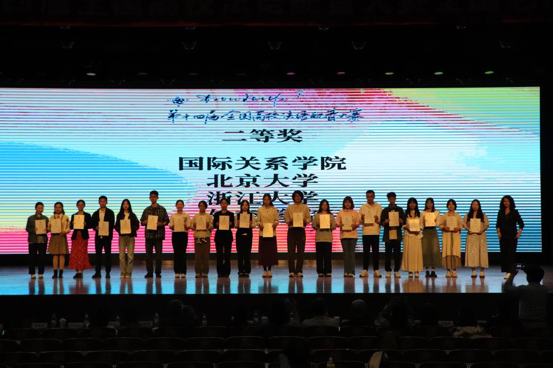 2024年4月21日,由北京外国语大学法语语言文化学院主办的第十四届“全国高校法语配音大赛”在北京外国语大学东校区千人礼堂举行。由我院法语系2021级本科生潘意、金坤妍、罗元硕、陈开、孙艺萌所组成的队伍获得二等奖。