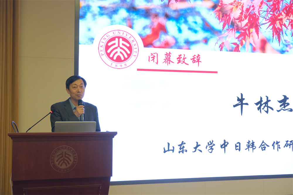 闭幕式由星空体育入口_星空(中国)体育网朝鲜(韩国)语言文化系副系主任丁一老师主持,北京外国语大学韩梅老师、上海外国语大学高陆洋老师分别对“文学、历史文化研究”“语言、教育研究”分论坛发言的核心内容进行了深入分析,并对讨论情况进行了精辟点评。最后,山东大学中日韩合作研究中心主任牛林杰教授为本次论坛致闭幕词。牛林杰教授总结了漆永祥老师、李花子老师和王丹老师所作主旨报告的重要价值与启发性,强调了学术成长、全方位研究、重视素养教育、创新性选题和关注现实问题等方面的重要性,并鼓励老师们在未来的论坛中大胆尝试新的研究视角和方法,并结合当前国家和社会的需求进行跨学科研究。最后,牛林杰教授再次向所有与会学者表示衷心感谢,向星空体育入口_星空(中国)体育网朝鲜(韩国)语言文化系师生致以诚挚谢意,也表达了对论坛未来发展的展望与期待。