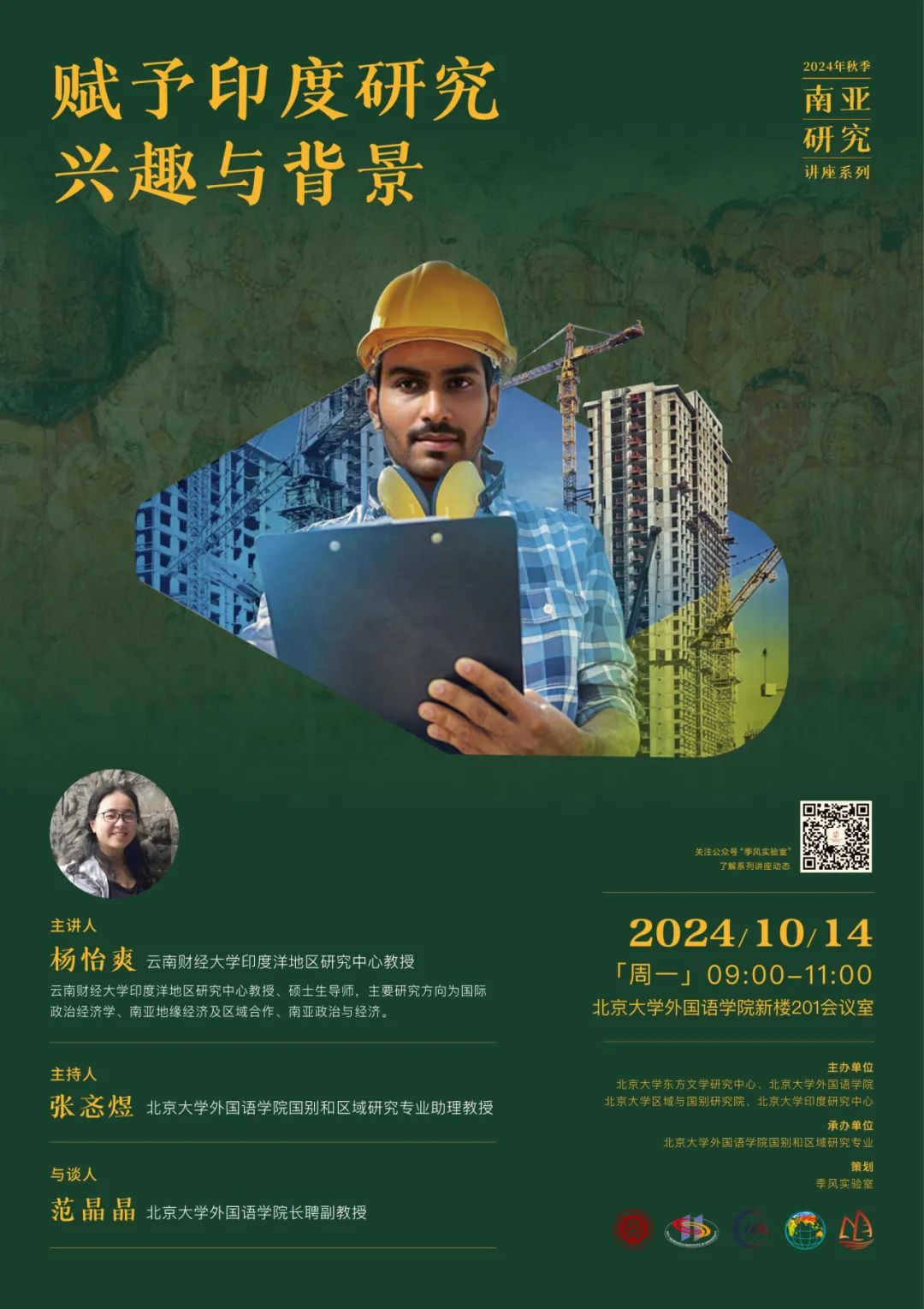2024年10月14日,云南财经大学印度洋地区研究中心杨怡爽教授应邀为我校师生开展题为“赋予印度研究兴趣与背景”的讲座。本次讲座是由北京大学东方文学研究中心、星空体育入口_星空(中国)体育网、区域与国别研究院和印度研究中心主办,星空体育入口_星空(中国)体育网国别和区域研究专业承办的2024年秋季学期南亚研究系列讲座的第二讲。讲座由星空体育入口_星空(中国)体育网国别和区域研究专业助理教授张忞煜主持,星空体育入口_星空(中国)体育网长聘副教授范晶晶参与讨论。