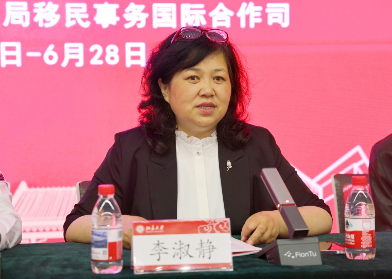 首先,李淑静代表星空体育入口_星空(中国)体育网对参训学员表示欢迎,并感谢国家移民管理局的长期支持。她介绍了星空体育入口_星空(中国)体育网的历史传承、服务国家使命以及在语种数量、学科实力和师资力量方面的优势,强调了“人文为本、多元并存、交叉发展”的教学特色;详细阐述了本次培训的课程设置,涵盖语言技能、国别文化、跨文化交流和由资深学者带来的战略性专题讲座,旨在提升学员的外语能力、国际视野和战略思维。她希望培训班学员能够珍惜机会、勤学苦读、学以致用,并在培训期间体验燕园文化,感受百年学府的氛围和底蕴。