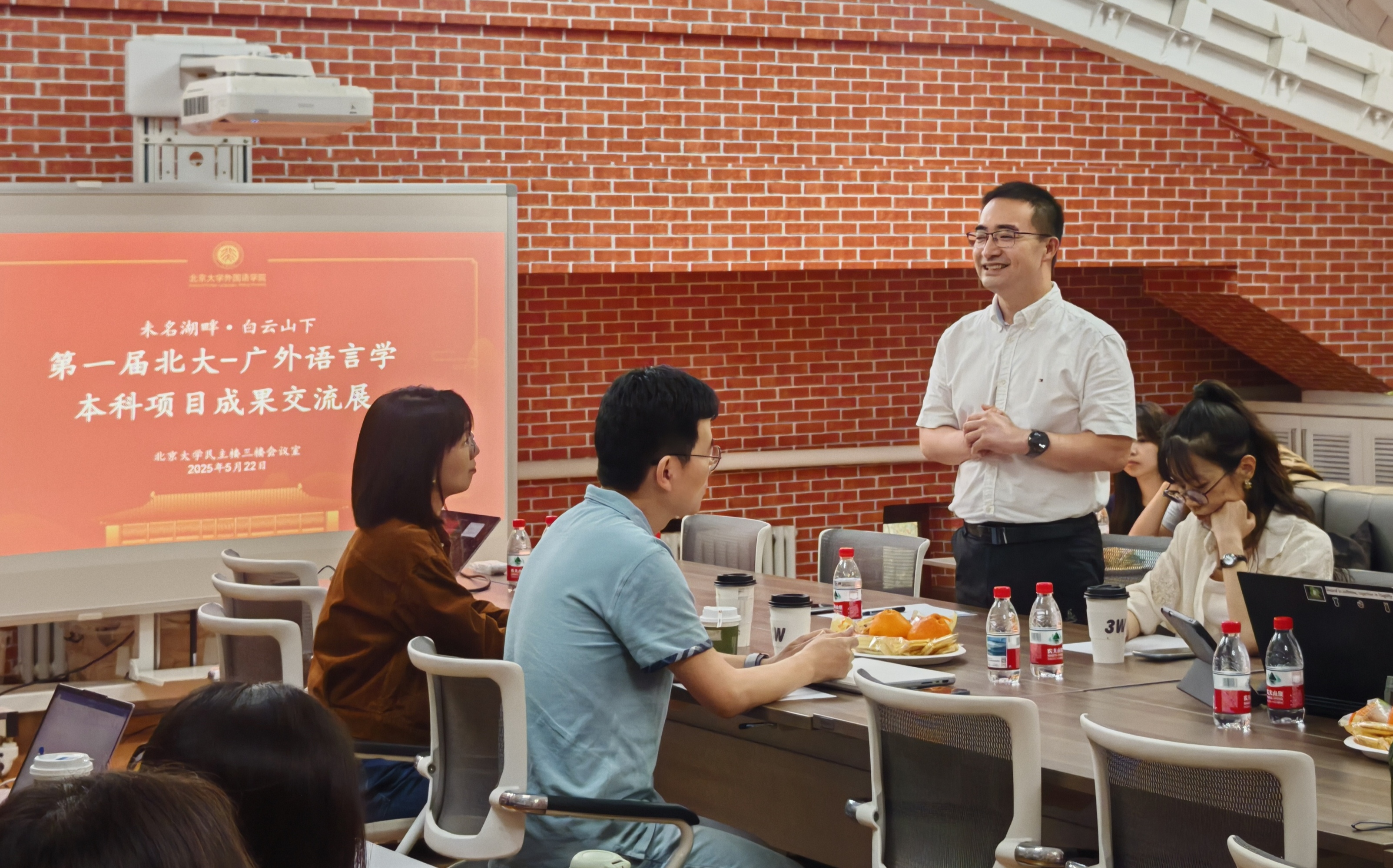 2025年5月22日下午2时,第一届北大-广外语言学本科项目成果交流展在星空体育入口_星空(中国)体育网召开。此次交流展由星空体育入口_星空(中国)体育网外国语言学及应用语言学研究所承办,旨在深化校际合作,为两校外国语言文学学科下的语言学本科教育搭建学术交流的桥梁,共同推动外国语言学及应用语言学学科的发展。星空体育入口_星空(中国)体育网外国语言学及应用语言学研究所所长胡旭辉长聘副教授、副所长冯硕助理教授、秘书苏晓老师、广东外语外贸大学英语语言文化学院副院长吴庄教授、院长助理陈哲教授及两校语言学方向的学生约30人参加活动。