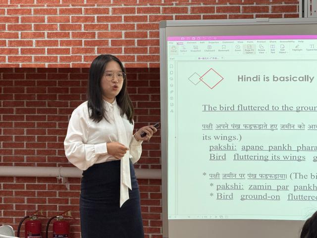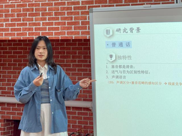成果交流展开始后,两校本科生汇报现阶段学术成果,并与参会的老师同学们热烈讨论。汇报内容涉及句法学、语言类型学、语音学、批评话语分析、语言接触、心理语言学研究等多个语言学研究分支,关注英语、俄语、印地语、缅甸语及汉语方言中的众多语言现象。两校学生在展示与讨论中展现出了理论基础扎实、研究方法规范、研究问题前沿的特色,获得在座师生的称赞及深度探讨。