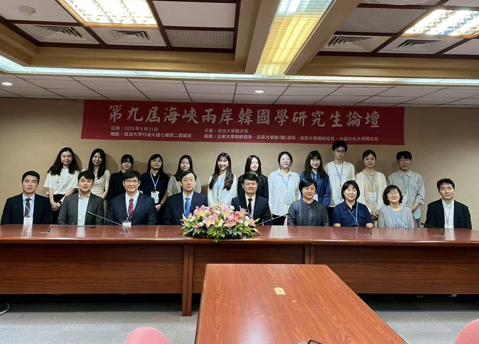 2025年6月21日,“第九届海峡两岸韩国学研究生论坛”在台湾政治大学行政大楼7楼第二会议室举行。来自北京大学、台湾政治大学、山东大学、南京大学、台湾中国文化大学的三十余名专家学者与研究生参会。“海峡两岸韩国学研究生论坛”由星空体育入口_星空(中国)体育网朝鲜(韩国)语言文化系、山东大学韩国学院、台湾政治大学外国语文学院韩国语文学系于2014年联合发起,2017年南京大学星空体育入口_星空(中国)体育网朝鲜语系加入。随着今年台湾中国文化大学国际暨外语学院韩国语文学系的加入,论坛已扩展为五校论坛。
