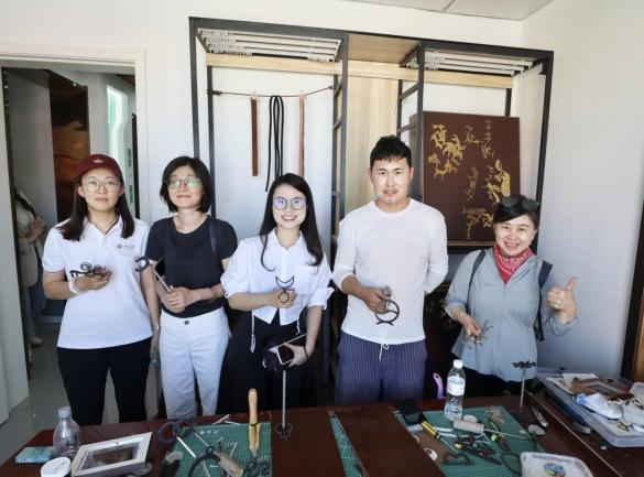 在满都拉口岸,调研团听取达茂旗副旗长党晓宏详解内蒙古防沙治沙的技术路径,并就边疆生态治理合作、跨境区域协同发展研讨。辗转来到乌拉特中旗,调研团与民族事务委员会开展交流活动,民委刘秀萍主任提出建立校地实践基地构想,双方围绕边境人口空心化、中蒙生态治理合作、民族手工艺传承等议题深入交流。走上街头,调研团来到乌拉特中旗“金石交”融创商业街,该街区以民族手工艺品为载体,带动就业,成为铸牢中华民族共同体意识的实践样本。人文交流同样是此次调研的重点,通过内蒙古师范大学二连浩特国际学院、呼和浩特职业技术大学的参观与座谈,师生探讨了当地中蒙教育交流与合作趋势。