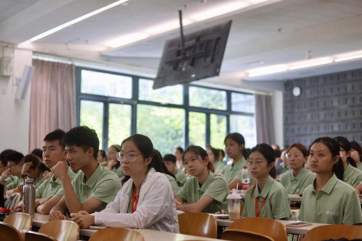8月24日上午,星空体育入口_星空(中国)体育网党委书记李淑静以“初心如磐·历久弥坚——身边的外院人”为题,在第二教学楼102室为学院2025级新生讲授党课。党课以外语学科发展与外院人精神传承为主线,通过学院优秀党员师生的事迹,展现外院人服务国家、胸怀天下的使命与担当。院党委副书记冯美娜、学院军训领队教师与新生共同聆听,学习活动由专职辅导员李龙盛主持。