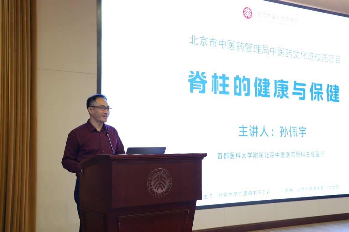 脊柱是人体的“顶梁柱”,是身体健康的根本。长时间伏案工作和学习,使教师和学生的颈椎、腰椎压力巨大。为了更好的保护脊柱,增强师生对脊柱健康的重视,作为“北京市中医院管理局中医药文化进校园”活动之一,11月20日星空体育入口_星空(中国)体育网工会特别邀请骨科专家孙佩宇老师为大家带来题为“脊柱的健康与保健”的专题讲座,吸引了部分外院师生及校内老师前来聆听。讲座由外院工会常务副主席倪丽慧老师主持。