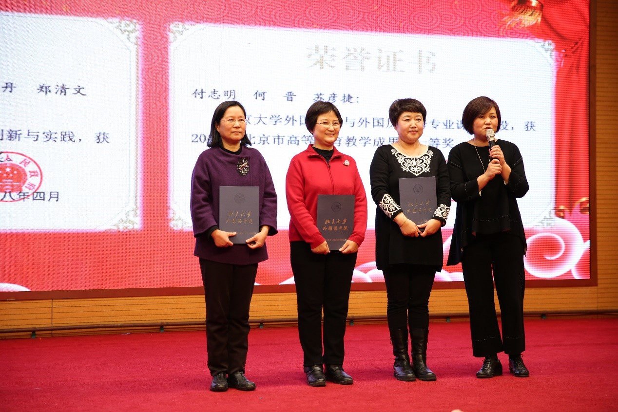 宁琦院长和李淑静书记向多位获奖教师颁发了市级教学成果奖和校级教学成果奖的荣誉证书,感谢他们在学科建设和教书育人方面做出的突出贡献,同时也向2018年光荣退休的老师们送上了感谢状!