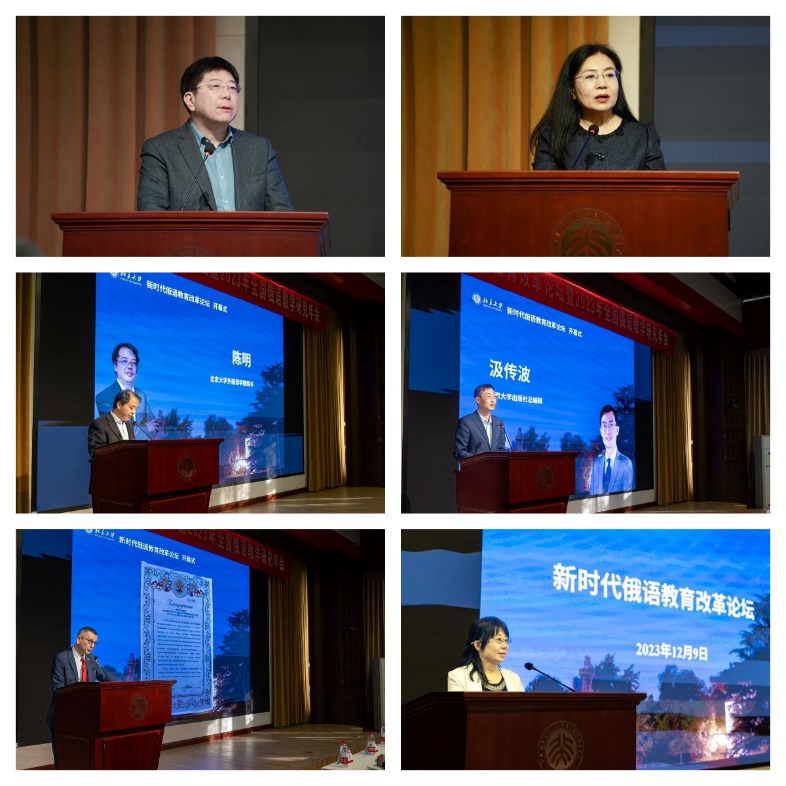 2023年12月9日,新时代俄语教育改革论坛在北京大学召开。本次高层论坛由星空体育入口_星空(中国)体育网俄罗斯语言文学系、教育部“俄语人才培养模式改革虚拟教研室”、中国俄罗斯东欧中亚学会俄语教学研究分会、北京大学出版社联合举办,来自全国高校近百名俄语语言文学专业专家学者、教师参加讨论,围绕国家级一流本科专业建设、国家级一流本科课程建设、高质量外语专业教材建设及有组织科研、服务中国式现代化建设的俄语人才培养改革与实践、数智化时代的高校俄语教学改革和全国俄语教育改革云共同体(虚拟教研室)建设等议题进行发言和交流,探讨当前国家发展的迫切需要,借鉴国内外俄语专业办学的成功经验,思考我国俄语专业的定位、发展与方向。