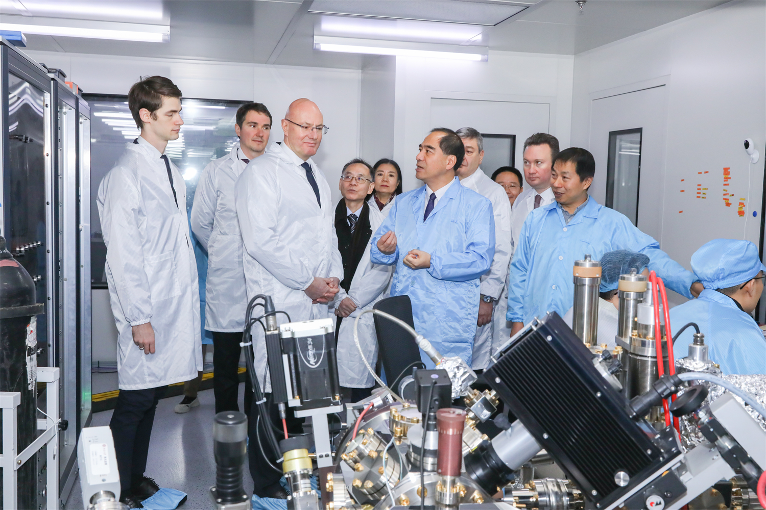 龚旗煌、宁琦等陪同切尔内申科一行参访北京大学物理学院人工微结构和介观物理国家重点实验室。龚旗煌介绍了实验室及北大物理学科的发展情况。切尔内申科表示,希望俄中两国在基础科学领域加强联系,开展更多合作。