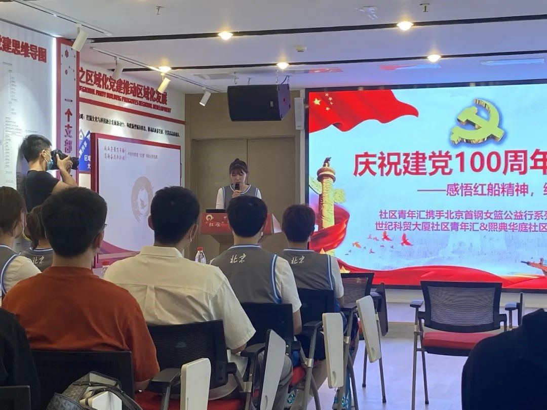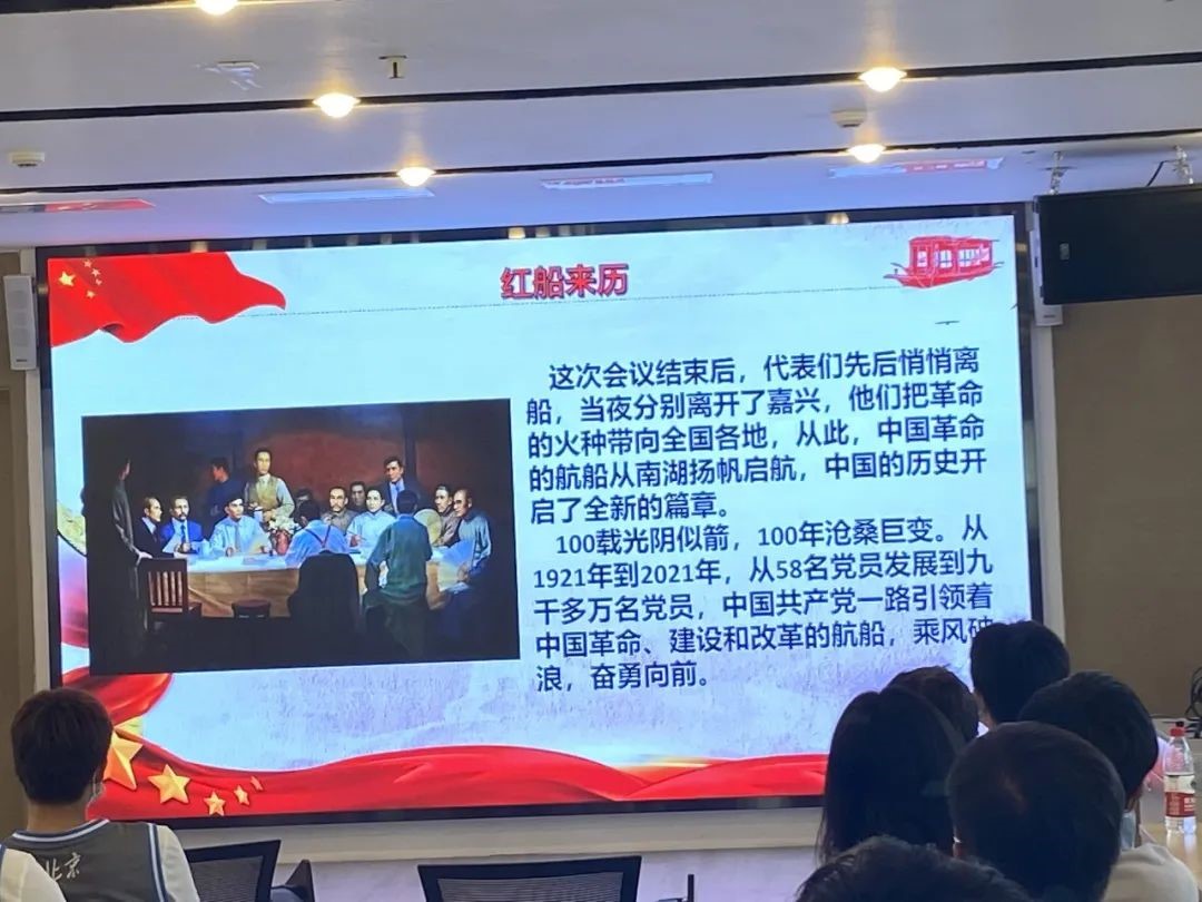 2021年正值中国共产党建党100周年。“红船精神”集中体现了中国共产党的建党精神,是中国共产党革命精神之源,昭示着中国共产党人的初心和使命。为号召支部青年不忘爱国初心、坚定信仰、学习红船精神、了解中国共产党成立的艰辛历程、继承红色基因,2021年6月4日下午14时,北京大学2020级菲律宾语团支部共同前往中关村街道世纪科贸大厦·社区青年汇党建e站,开展以“感悟红船精神,继承红色基因——庆祝建党100周年”为主题的学习活动。参与本次活动的还有首钢女篮的队员和来自北京林业大学的学生。
