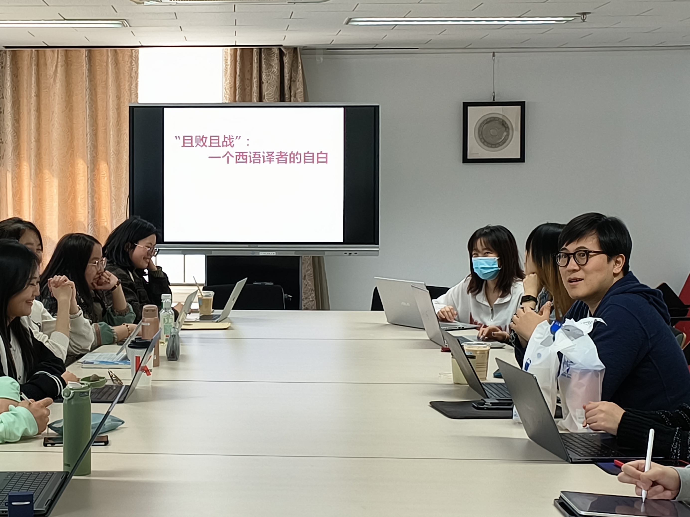 3月12日下午,由星空体育入口_星空(中国)体育网团委主办的以“且败且战:我的学译点滴”为主题的圆桌谈活动在外院新楼201室成功举办。本次活动主讲人为星空体育入口_星空(中国)体育网西葡意语系主任范晔老师。学院团委副书记杜姝格和20名同学参加活动。本次活动由西班牙语系2022级本科生任达主持。