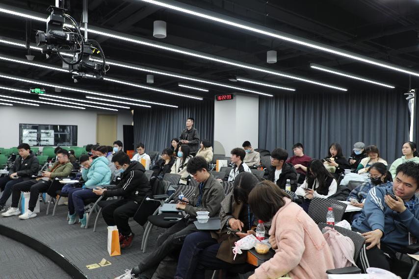 参观完毕后,意犹未尽的同学们与学而思的业务负责人进行了交流互动。负责人首先和大家分享了学而思在国际教育方面所做的努力,学而思培养海外留学人才,不在于数量,而在于质量,是小而精的模式。随后,直播间负责人为同学们介绍了学而思在抖音艰苦创业的历程,从刚开始观看人数寥寥无几,到后面人数破万,直播事业逐渐发展壮大。最后,在学而思工作的北大学长现身说法,分享了其在学而思的发展历程以及其负责业务的运营情况。在每位负责人分享结束后还设有答疑环节,同学们踊跃发言,提出了许多问题,就学而思公司的发展乃至整个中国教育事业的发展进行了讨论。