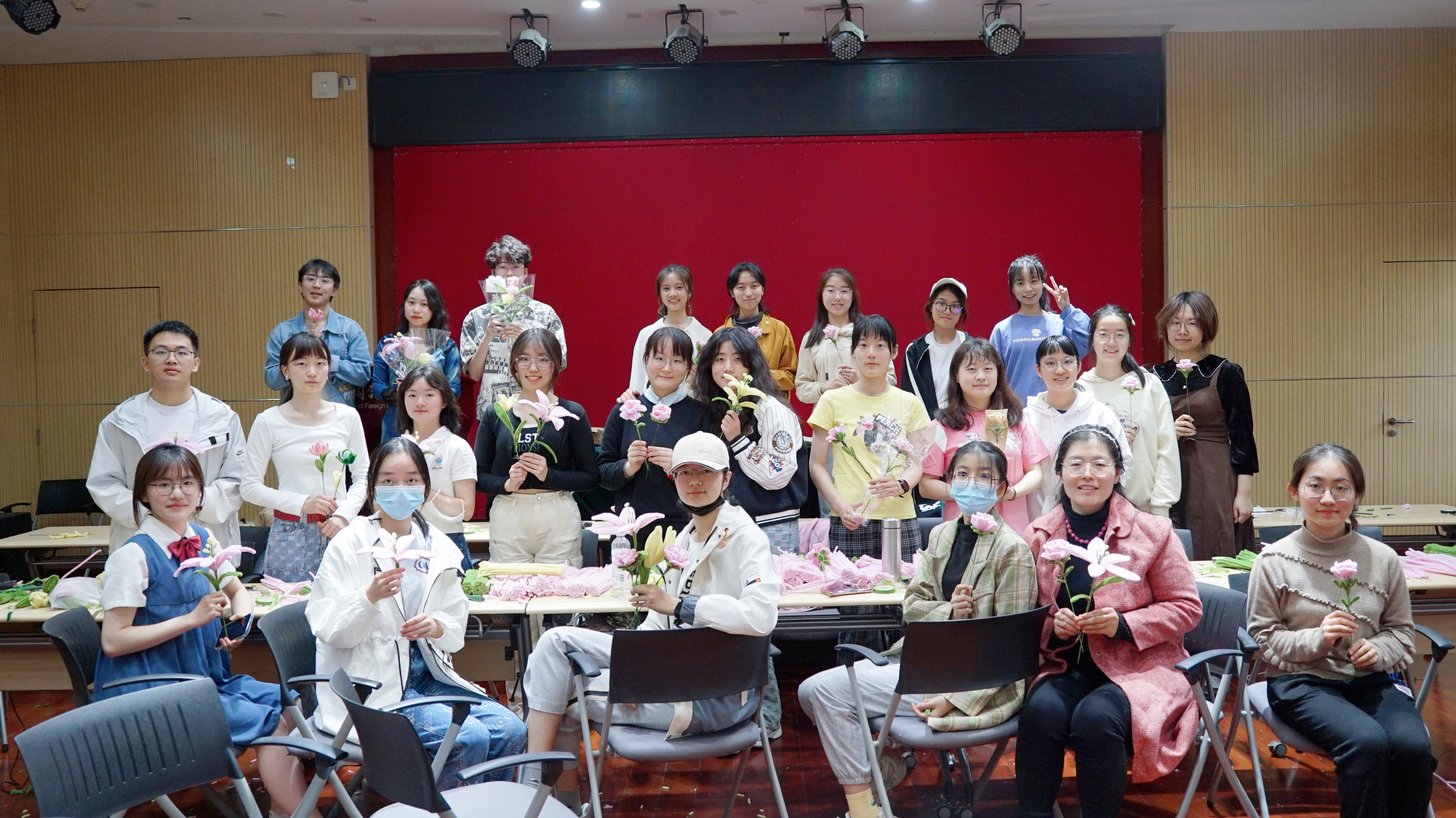 2023年4月29日,星空体育入口_星空(中国)体育网在外院新楼501室举办了母亲节特别策划——手工花的制作活动,鼓励同学们在母亲节到来之际,为母亲送上自己制作的花束,同时在卡片上用自己所学专业语言写下对妈妈的祝福。