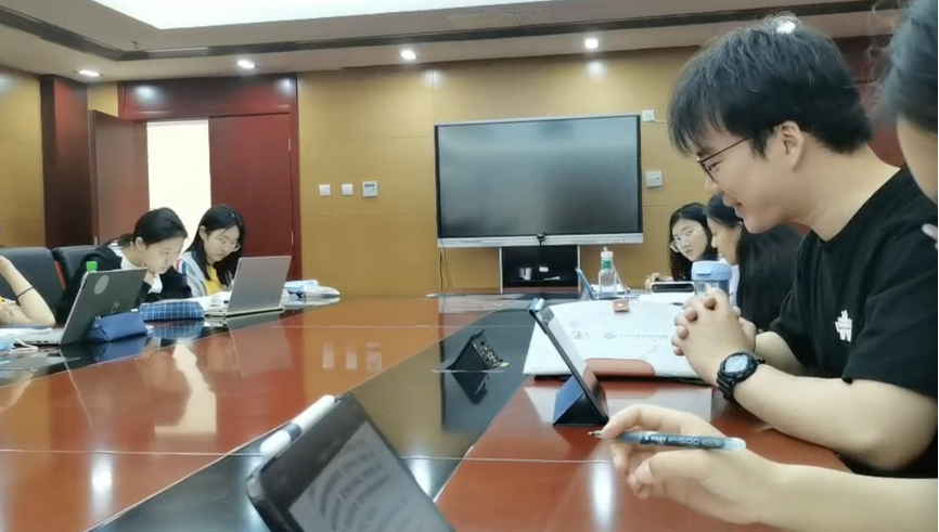 德语班领读人李牧翰选取的篇目是《努力走向社会主义生态文明新时代》。首先,他带领同学们对上次读书会所学内容进行了复习。随后,李牧翰带领同学们学习了中国特色社会主义事业五位一体总布局,并具体列举了中国为保护生态环境而推出的具体政策。最后,他与学生们讨论了近年来生态环境发生的变化,并就个人如何为建设美丽中国添砖加瓦展开了深入讨论。