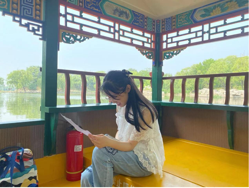 结束了西洋楼遗址的参观后,支部的同学们来到了圆明园湖上的游船中听取卢心然同学精心准备的党课。本次党课以“觉醒一代与我们这一代”为主体,在回忆觉醒年代的奋斗青年们的峥嵘岁月的同时,大家坐在圆明园的“红船”中,身临其境地感受到了党的一大在南湖红船上召开之时的历史氛围。支部成员们在追忆历史的同时,又在卢心然同学的带领下提出了我们作为新一代北大青年、中国青年的历史使命和任务:作为一名外院的学子,我们要不懈努力,在深层次地了解世界各国人民与文化的同时,在多个领域与世界各国进行更高层次上的交流。