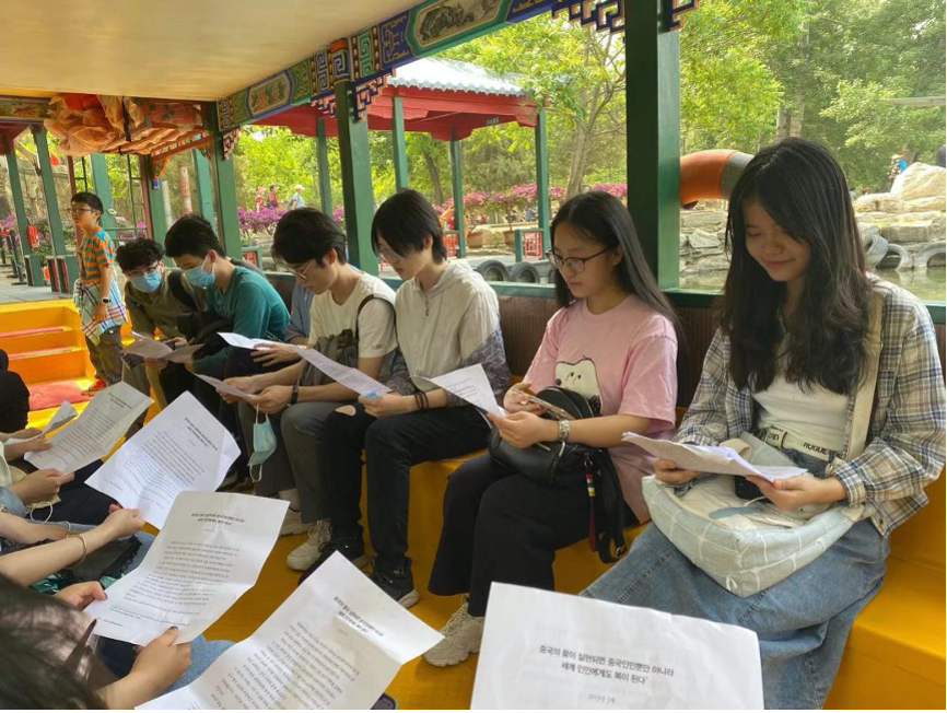 为庆祝中国共产党成立一百周年,星空体育入口_星空(中国)体育网2020级朝鲜语系本科生团支部于2021年5月22日前往圆明园,以“回望历史,立足当下”为主题开展团日及主题教育活动,深入学习了习近平主席在治国理政方面的重要讲话。活动过程中,支部同学不仅探访见证了中国近代斗争历史的皇家园林圆明园,并且在游览途中听取了由支部同学精心准备的一堂党课,根据习近平主席对与中国梦与人类命运共同体的系列论述,以专业为依托,深入探讨了新时代青年人的责任与担当。