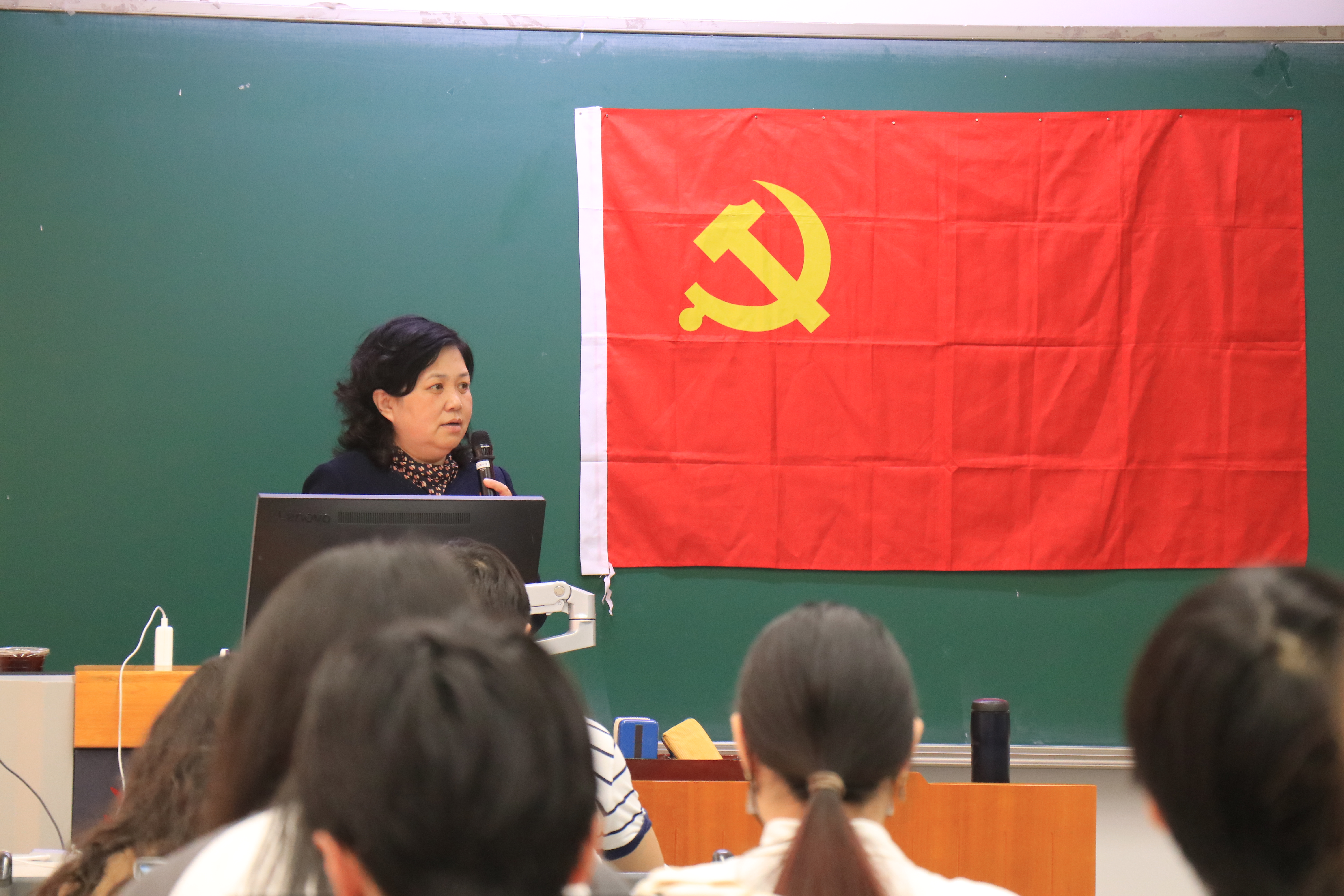 “党委书记讲党课”活动为党的理论培训班的专题报告系列活动之一,李淑静向培训班全体学员作题为“党的理论入脑入心入行,组织思想行动同步入党”的开班动员报告。在这场别开生面的党课上,李淑静以自己成长的历程为背景,述说了“自己眼中的中国和中国共产党”。她以生命中的几个关键时刻为线索,为与会师生分享了她与祖国同奋进、共命运的难忘经历。18岁那年,正逢1984年新中国成立35周年,李淑静作为一名年轻大学生,光荣地参加了国庆群众游行,从“小平您好”标语中亲身感受到了青年学生对党的坚定拥护。那年国庆之后,她毅然向党组织递交了入党申请书,表达了加入中国共产党的决心。43岁时,又逢2009年新中国成立60周年,身为北大教师的李淑静再度踏上国庆群众游行的舞台,身处“我的中国心”方阵中,她心中无比骄傲自豪。到了2019年,新中国成立70周年之际,53岁的她再次加入北京大学“凝心铸魂”方阵,与北大师生代表坚定地走过了天安门广场。与党同心、与国同行,这半个多世纪的成长历程,与党和国家的命运始终紧密相连,李淑静以自己的亲身经历,向同学们展示了一个真实而鲜活的党员形象,也展现了一个北大人应有的情怀和担当。