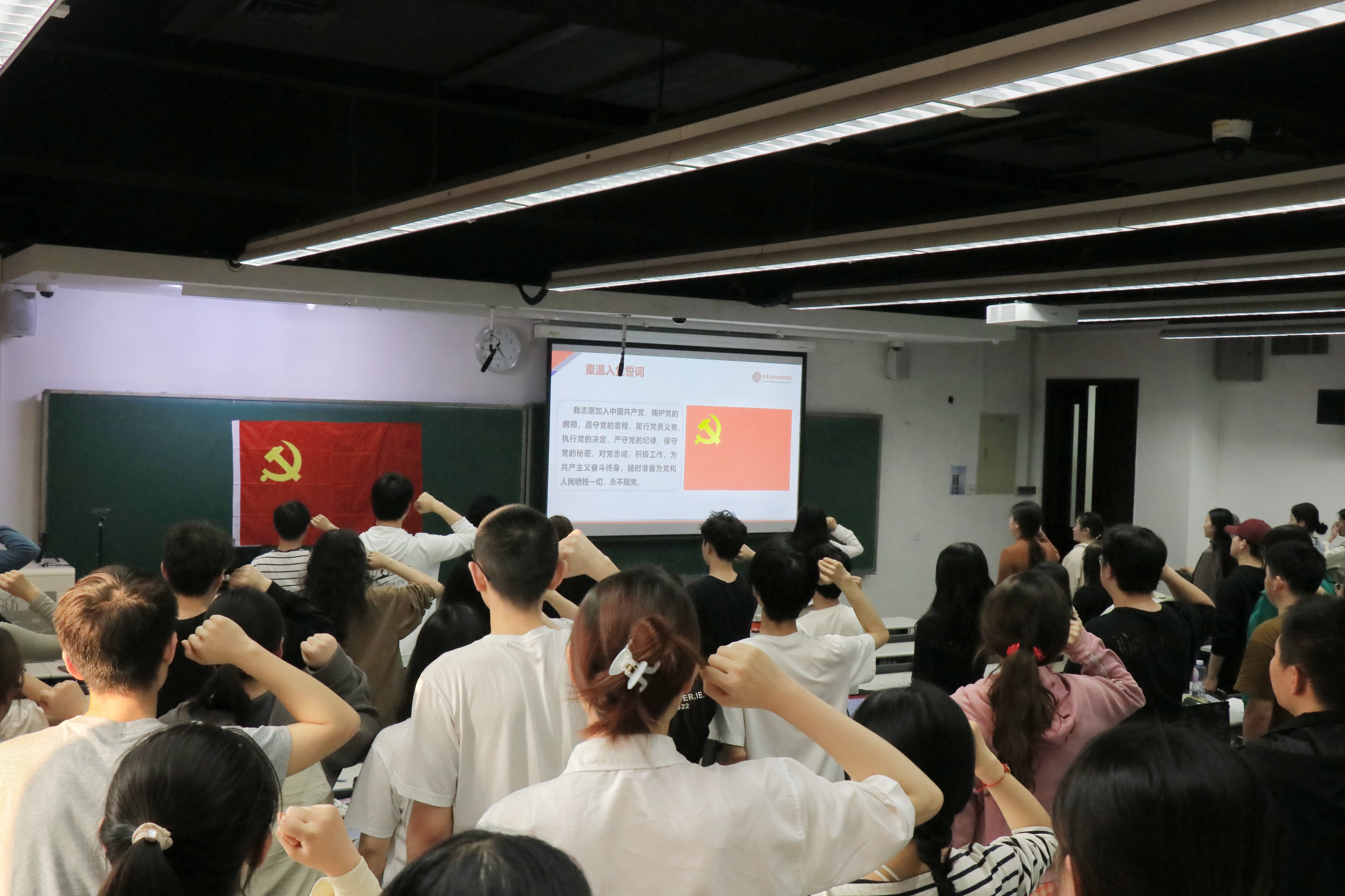 最后,李淑静带领全体党员重温入党誓词。李淑静对同学们提出殷切期盼,希望各位预备党员能够始终坚定正确的政治方向,加强政治理论学习,坚定理想信念,在日常学习、工作与生活中做到理论与实践相结合,勇于奋斗、甘于奉献,赓续红色血脉,传承红色基因,让青春在为祖国、为民族、为人民、为人类的不懈奋斗中绽放绚丽之花!