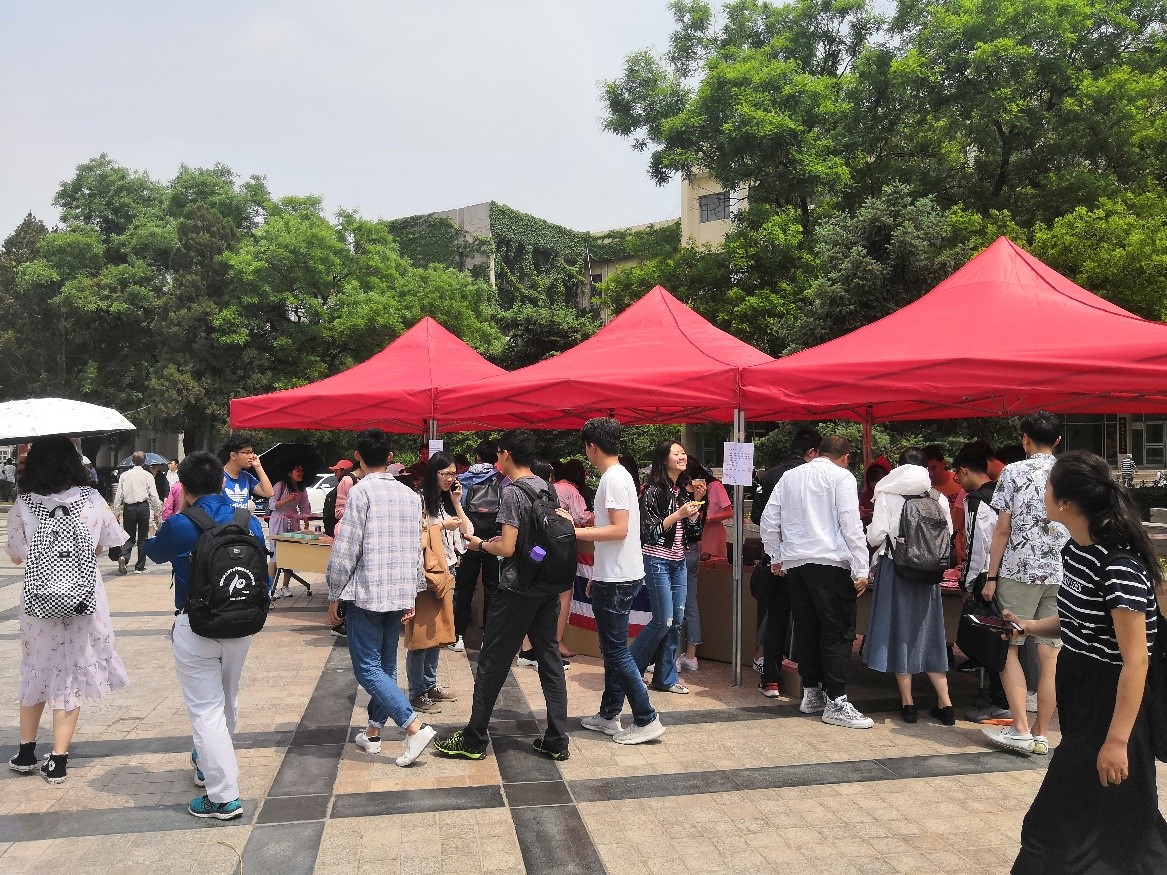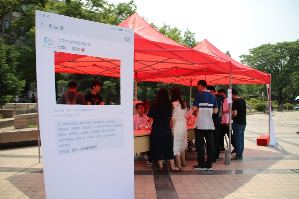 2019年5月10日,“廿载·语你”第十一届星空体育入口_星空(中国)体育网文化节“情深深,语萌萌”文化日在北京大学百周年纪念讲堂广场成功举办。文化日由星空体育入口_星空(中国)体育网学生会主办。来自外院的同学们通过文艺汇演、搭建照片墙、举办美食汇、答题赢周边等多样形式庆祝文化日,吸引了来自北京大学各个院系的师生积极参与活动。