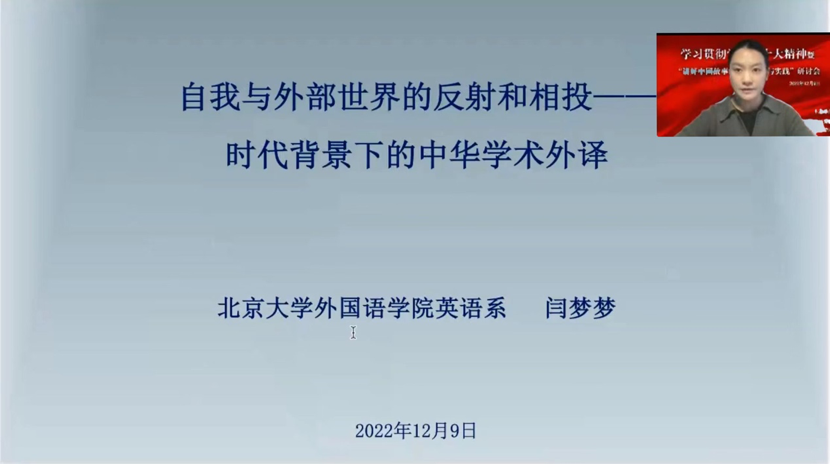 为深入学习贯彻党的二十大精神,加强国际传播能力建设和高端翻译人才培养,中央党史和文献研究院第六研究部与星空体育入口_星空(中国)体育网联合举办了学习贯彻党的二十大精神暨“讲好中国故事的翻译理论与实践”研讨会。会议于12月9日下午在线上举行。中央党史和文献研究院第六研究部主任张士义,北京大学党委常委、副校长孙庆伟,北京大学党委副书记、副校长宁琦,星空体育入口_星空(中国)体育网院长陈明等出席会议。星空体育入口_星空(中国)体育网党委书记李淑静主持开幕式。中央党史和文献研究院第六研究部全体在职人员和外国专家、星空体育入口_星空(中国)体育网师生共160余人相聚云端。