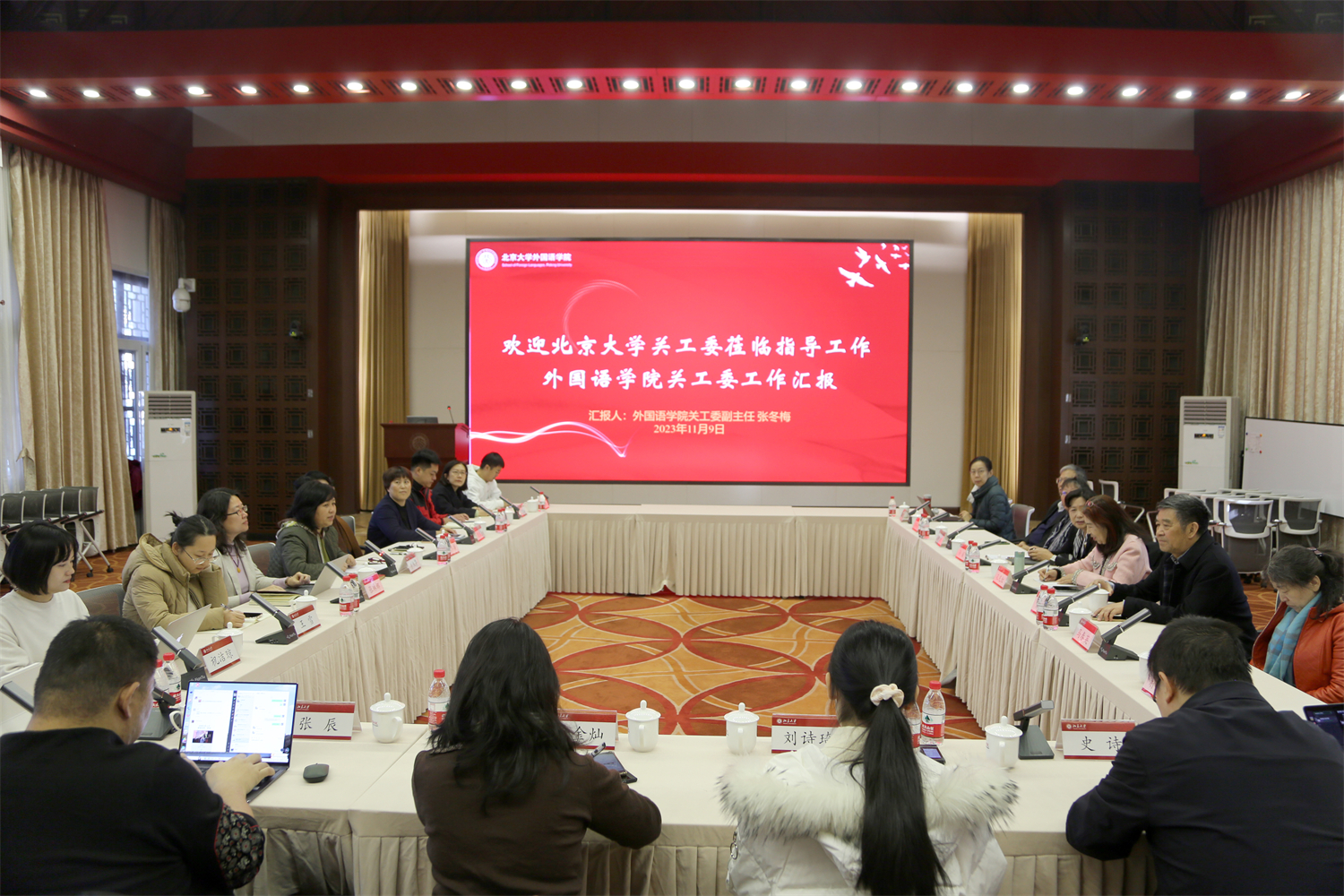 张冬梅从提升关工委铸魂功能、积蓄关工委育人势能、增强关工委传播效能等三个方面对学院近年来开展的关心下一代工作进行了汇报。一是充分发挥“五老”优势,找准服务青年发展的切入点、结合点、着力点,组织青年师生采访老同志,整理口述史料,讲好北大故事,传承同文之志。加强习近平新时代中国特色社会主义思想理论宣传宣讲,邀请离退休老教授分享学习工作的奋斗史,录制专题视频《心中来路不忘》,创作献礼建党百年原创歌曲《初心》。拓展教育阵地,搭建外院文化节、丝路诗语等文化活动平台和学科史资源库,以文化人,以文育人。二是凝聚传、帮、带力量,通过组织开展各类研讨会、学术沙龙以及“讲好第一课”等系列活动,充分发挥离退休教师的独特优势和榜样引领作用,加大对青年的关心和培养力度,助力新时代外语学科发展。多位老教师设立奖学金、奖教金、科研基金,鼓励外语专业师生继承和弘扬外院人“世界在我脚下,祖国在我心中”的精神,为培养全面发展的社会主义建设者和接班人作出贡献。三是加强宣传表彰工作,增强关工委传播效能。学院老教师为中国文化的国际传播作出积极贡献,多位老教师获外国政府及元首颁发文化贡献奖、相关国家顶级学术机构授予的院士称号等重要研究成果奖,通过树立典范,鼓励外院青年主动扛起融通中外重任。完善《“一带一路”沿线国家经典诗歌文库》《东方文化集成》等品牌建设,讲好中国故事,传播中国声音。
