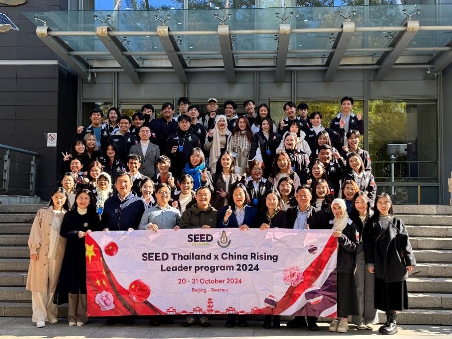 2024年10月28日上午,泰国七世王学院代表团一行36人到访星空体育入口_星空(中国)体育网,与泰语专业师生见面交流。本次七世王学院代表团由七世王学院基金会主席兼泰国总理府副秘书长波汶萨·伍万诺(Borwornsak Uwanno)带领,随行人员包括上议院经济货币和财政委员会顾问甘诺·塔纳巴文(Kannop Thanapakpawin)、七世王学院委员会委员道诺伊·素提尼帕蓬(Daonoi Suttiniphapunt),25名学生代表及8名工作人员。星空体育入口_星空(中国)体育网东南亚系薄文泽教授、副系主任金勇长聘副教授、泰语教研室主任熊燃助理教授、国际合作部海外推广办公室资深项目官员蒲清老师,和泰语专业全体本科及研究生同学共同参加了座谈交流。
