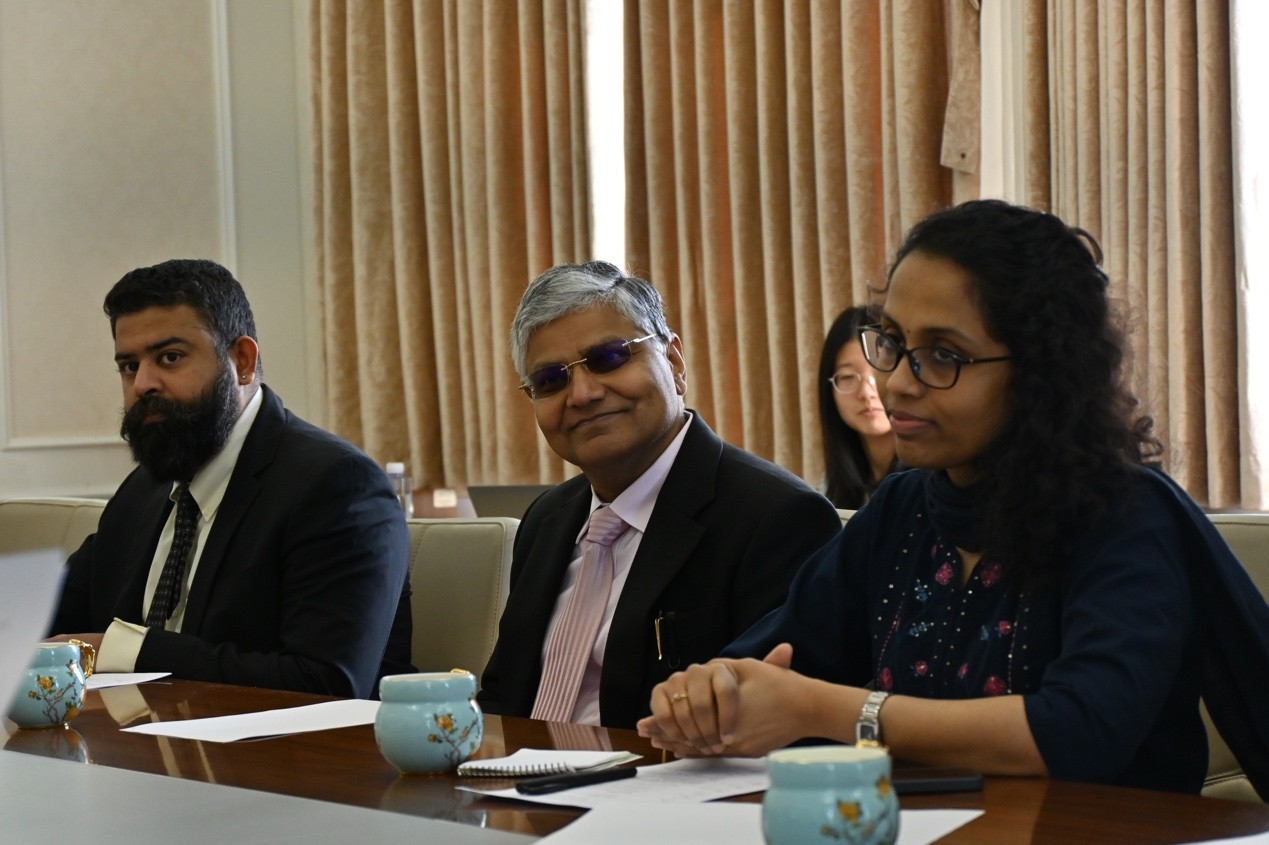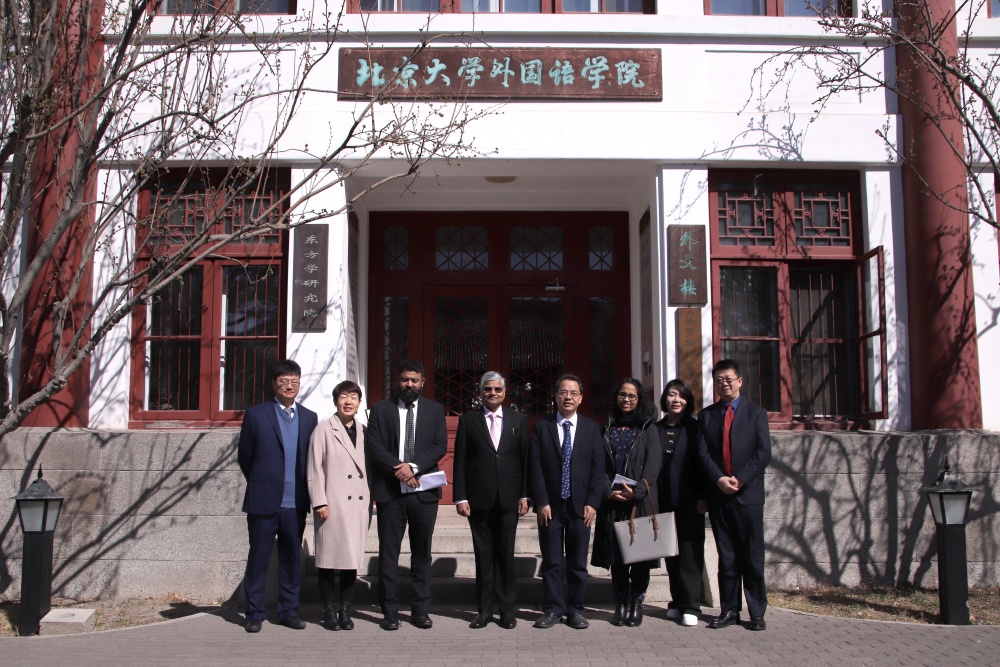3月18日上午,印度驻华大使罗国栋(Pradeep Kumar Rawat)一行访问北京大学。北京大学党委书记何光彩、北京大学党委副书记、副校长宁琦于临湖轩会见来宾。双方就中印人文交流、高等教育合作、学科共建等议题开展会谈。印度驻华大使馆政务、新闻与科技参赞卡提克·古鲁纳坦·艾尔(Karthik Gurunathan Iyer)与文化处一秘李沐恩(Neethu Rajan)陪同来访,星空体育入口_星空(中国)体育网党委书记李淑静、星空体育入口_星空(中国)体育网院长、印度研究中心主任陈明、国际合作部副部长崔喆、星空体育入口_星空(中国)体育网南亚学系系主任萨尔吉、南亚学系副系主任姜永红、南亚学系印地语教研室主任王靖、星空体育入口_星空(中国)体育网国别和区域研究专业助理教授、印度研究中心主任助理张忞煜陪同会见。